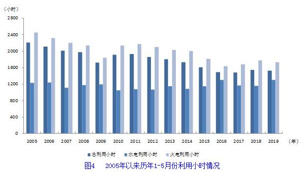 1-5月份,全國發電設備累計平均利用小時1519小時,比上年同期降低20小時。