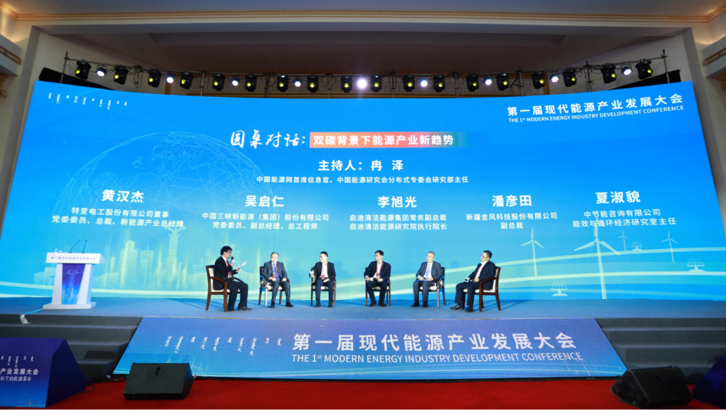 在本次大會的圓桌對話環(huán)節(jié),中國能源網首席信息官、中國能源研究會分布式專委會研究部主任冉澤,特變電工股份有限公司董事、黨委委員、總裁、新能源產業(yè)總經理黃漢杰,中國三峽新能源(集團)股份有限公司黨委委員、副總經理、總工程師吳啟仁,啟迪清潔能源集團常務副總裁、啟迪清潔能源研究院執(zhí)行院長李旭光,新疆金風科技股份有限公司副總裁潘彥田,中節(jié)能咨詢有限公司能效與循環(huán)經濟研究室主任夏淑貌共同探討了“雙碳背景下能源產業(yè)新趨勢”。