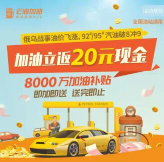 一直致力于打造全球領先的智能汽車生態圈消費服務平臺的云油加油,為解決油價上漲給全國近4億車主所帶來的油費支出壓力,將在近期送出8000萬加油補貼,車主用戶即加即送,送完即止。據工作人員透露,即日起,云油加油新用戶首次加油立返20元現金補貼,還可疊加會員立返3%-5%加油優惠;3月11日零點起,使用云閃付充值,還有機會立減20元,數量有限,先到先得。