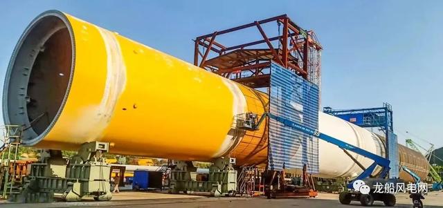 據稱,7#單樁直徑8.5米到9.2米、長度102米、重1924噸;22#單樁最大直徑10米,長度110米,重達2218噸,是國內目前產成的最大規格風電單樁基礎,名副其實的“定海神針”。