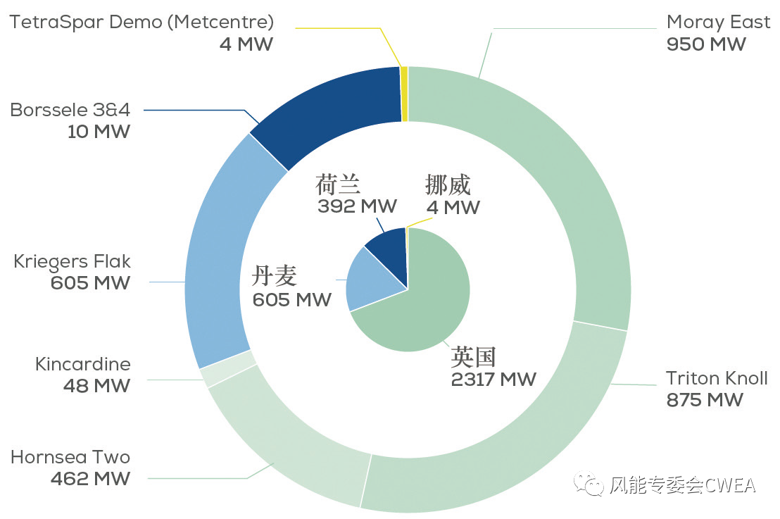 圖1 2021年歐洲部分或全部投運的海上風電項目