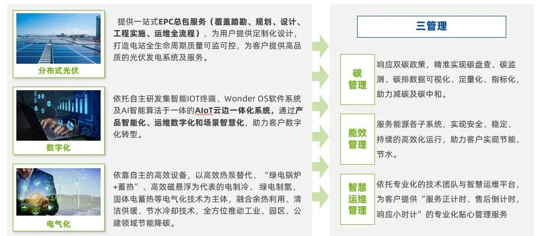 聚焦園區(qū)、工業(yè)、建筑能源領域,擁有包括分布式光伏發(fā)電、地熱取能、工業(yè)余熱利用等22種可再生能源利用技術,為客戶提供包含碳咨詢、能源工程、智慧運維等方面的智慧能源綜合解決方案服務,保障用戶安全、高效、綠色、智慧用能,是雙良智慧能源團隊的價值所在。
