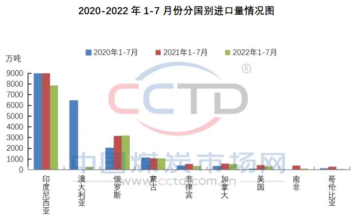 今年前7個(gè)月,我國(guó)累計(jì)從俄羅斯和蒙古國(guó)進(jìn)口煤炭數(shù)量小幅增長(zhǎng),而從其他國(guó)家進(jìn)口煤炭累計(jì)數(shù)量同比均出現(xiàn)不同程度的下降,尤其是從南非和哥倫比亞除年初有少量進(jìn)口外,已連續(xù)數(shù)月沒(méi)有進(jìn)口,同比降幅較為明顯。此外,澳洲煤進(jìn)口量也是去年滯留在港在今年得以通關(guān)的量。