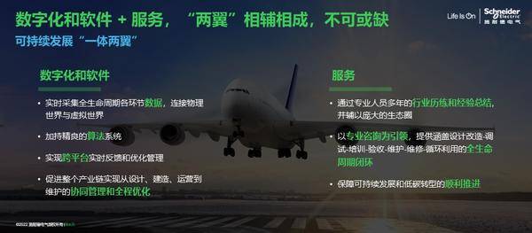 基于這四大場(chǎng)景中的不同痛點(diǎn),施耐德電氣打造的解決方案核心是可持續(xù)“一體兩翼”:以可持續(xù)為“一體”,以服務(wù)和數(shù)字化為“兩翼”。施耐德電氣認(rèn)為,貫穿全生命周期的服務(wù)是數(shù)字化落地的核心與重要載體,而以軟件為核心的數(shù)字化技術(shù)是當(dāng)前最佳的減碳工具。施耐德電氣以專業(yè)咨詢?yōu)橐I(lǐng),提供涵蓋改造、調(diào)試、培訓(xùn)、驗(yàn)收、維護(hù)、維修、循環(huán)利用的全生命周期服務(wù)閉環(huán);而與服務(wù)相輔相成,施耐德電氣以軟件為核心的數(shù)字化技術(shù)正在融入應(yīng)用場(chǎng)景,實(shí)現(xiàn)對(duì)產(chǎn)品和資產(chǎn)全生命周期的數(shù)據(jù)“可視、可管、可控、可用”,進(jìn)而促進(jìn)整個(gè)產(chǎn)業(yè)鏈實(shí)現(xiàn)全生命周期的協(xié)同管理和全程優(yōu)化,推動(dòng)客戶數(shù)字化價(jià)值落地的同時(shí)實(shí)現(xiàn)全程減碳。