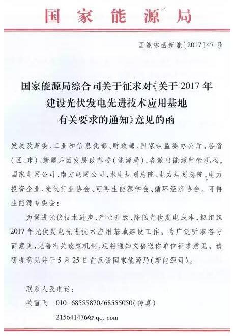 各單位需在5月25日之前將意見反饋到國家能源局新能源司。