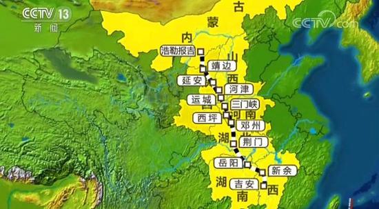 浩吉鐵路全長1813.5公里,北起內蒙古鄂爾多斯市境內的浩勒報吉南站,途經內蒙古、陜西、山西、河南、湖北、湖南、江西七省區,終到京九鐵路吉安站。